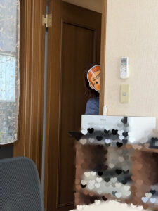お面は節分だから、とスーパーで配っていたそうです。事務所では、どうして鬼じゃなくてサルなんだろうねぇ、という話になりました。